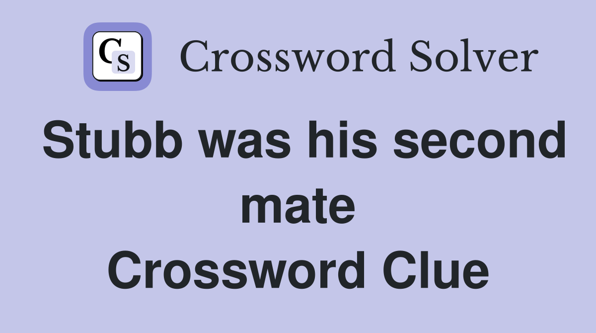 Web we solved the clue 'stubb was his second mate' which last appeared on april 20, 2024 in a n.y.t crossword puzzle. Web here is the answer for the crossword clue stubb was his second mate last seen in new york times puzzle. Here you find answer to stubb. We will try to find the right answer to this particular.