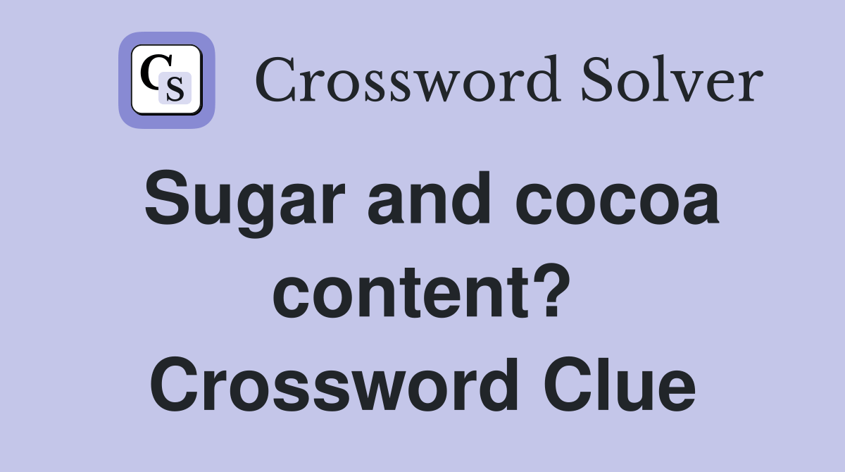 Web Here Is The Answer For The Crossword Clue Sugar And Cocoa Content?