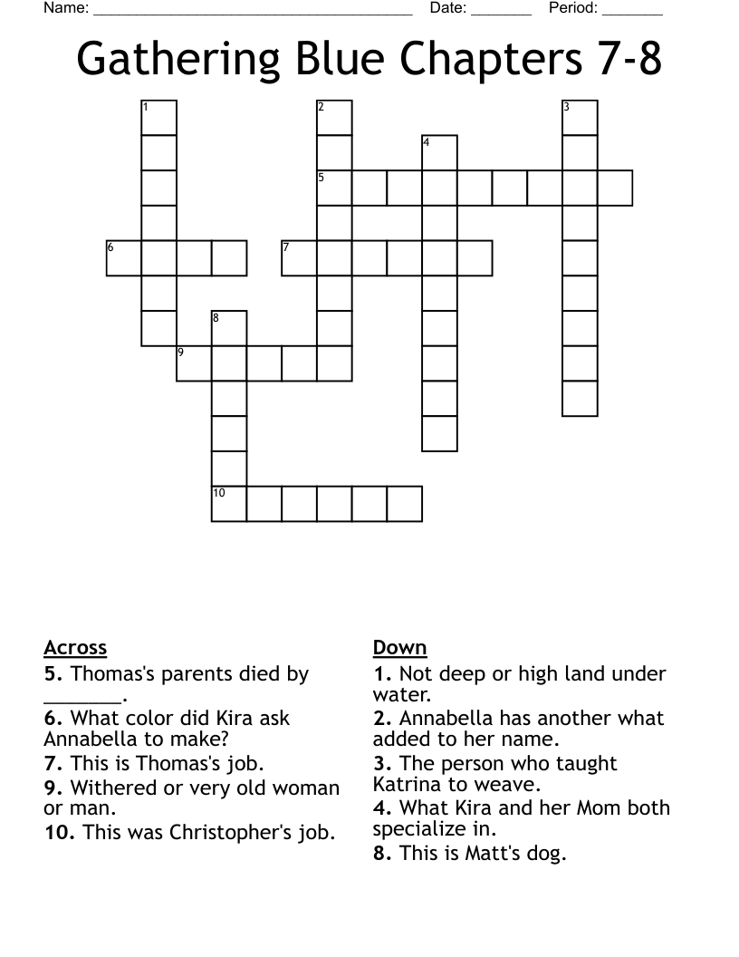 Gathering Blue Chapters 12 Crossword Puzzle Rachel Roden WordMint