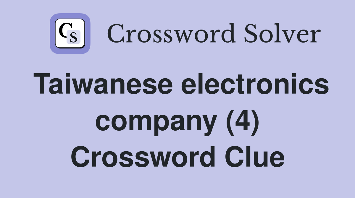 Taiwanese electronics company (4) Crossword Clue Answers Crossword Solver