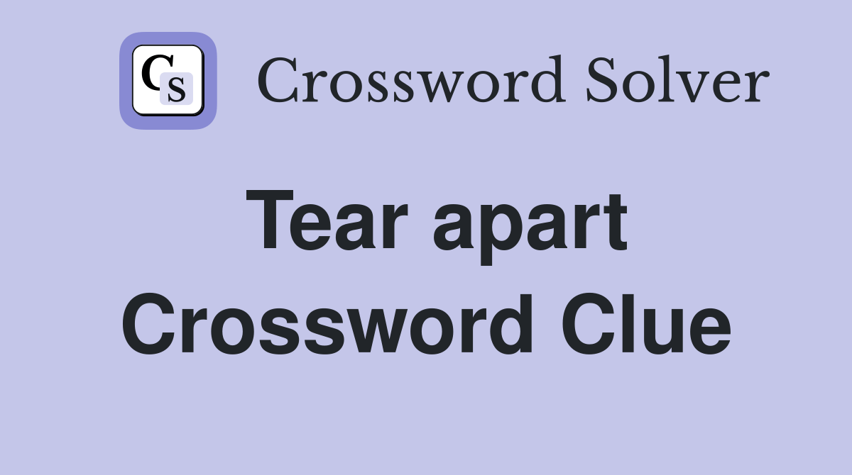 Web find out the possible solutions for the crossword clue tear apart from various sources and publications. We will try to find the right answer to this particular crossword clue. See the top answers, definitions,. We have found 40 possible answers for this. The crossword solver finds answers to.