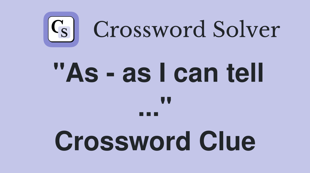 "As as I can tell" Crossword Clue Answers Crossword Solver