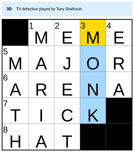 I would like to thank Vic for giving me the answer to 3 down on today's NYT mini crossword. r