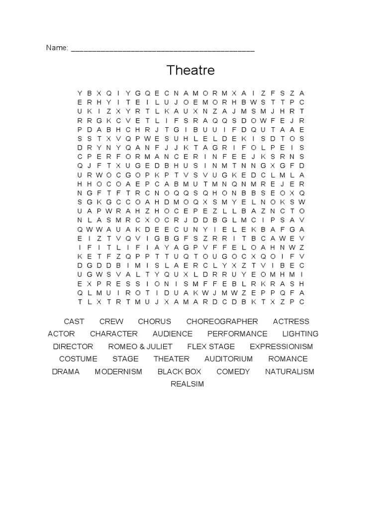 THEATRE ARTS VOCABULARY Crossword WordMint