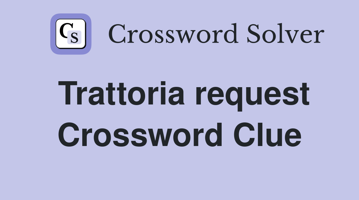 We will try to find the right answer to this particular crossword. The crossword solver finds answers. Web trattoria request crossword clue. Web here is the solution for the trattoria request clue featured in la times daily puzzle on april 6, 2024. Did you find the solution of trattoria.