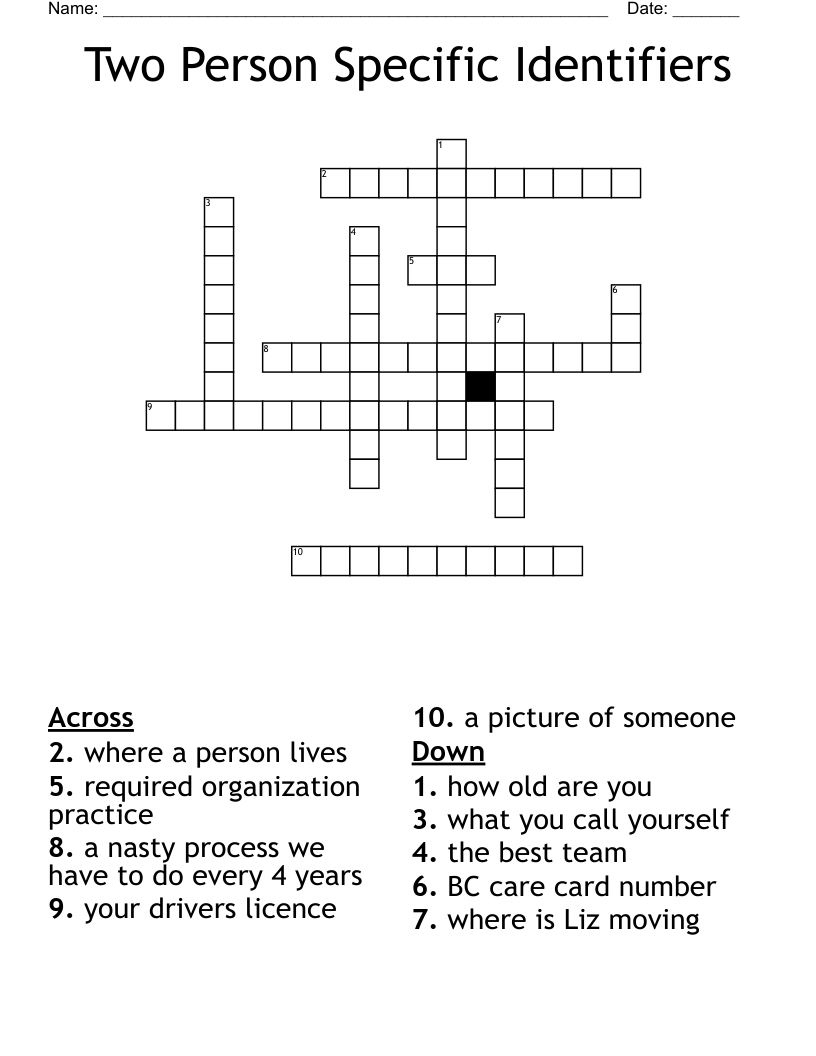 (Part Two) Persons Unknown Crossword Puzzle WordMint
