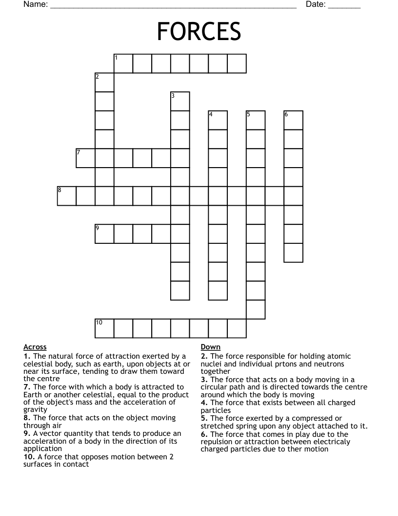 Crossword Puzzle on Forces WordMint
