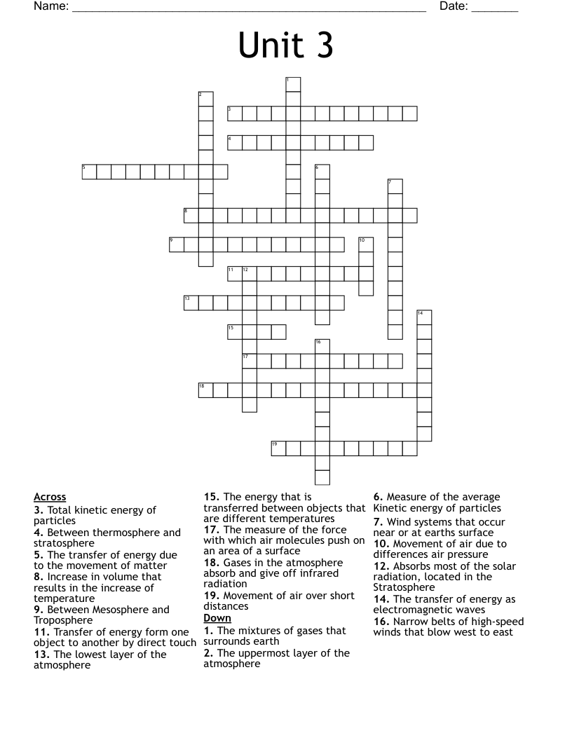 UntitleChapter 8 Thermal Energy and Heat Crossword WordMint