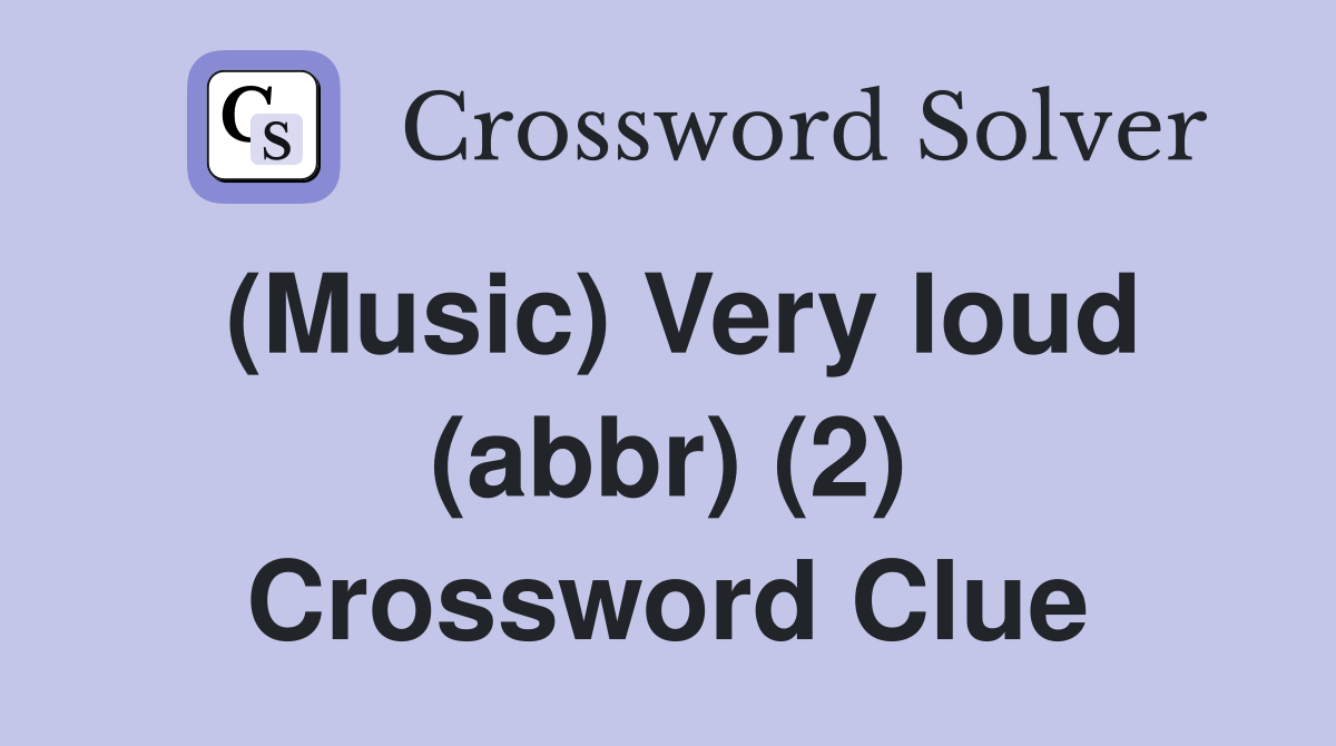(Music) Very loud (abbr) (2) Crossword Clue Answers Crossword Solver