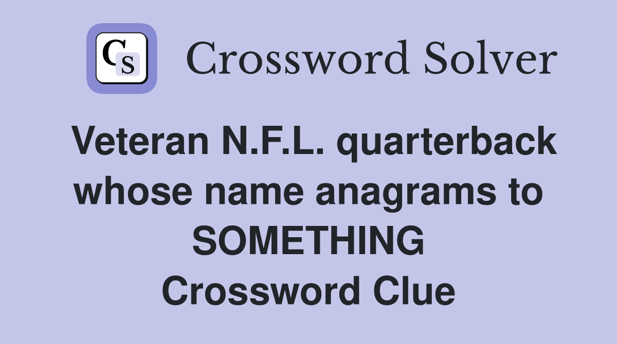 Web here is the answer for the crossword clue veteran n.f.l. Web here are the possible solutions for veteran n.f.l. Web veteran nfl quarterback whose name anagrams to something nyt crossword clue. The answer for this clue. Quarterback whose name anagrams to something.