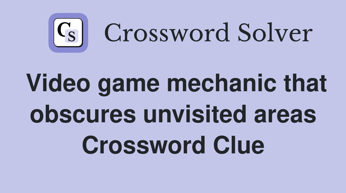 Video game mechanic that obscures unvisited areas Crossword Clue Answers Crossword Solver