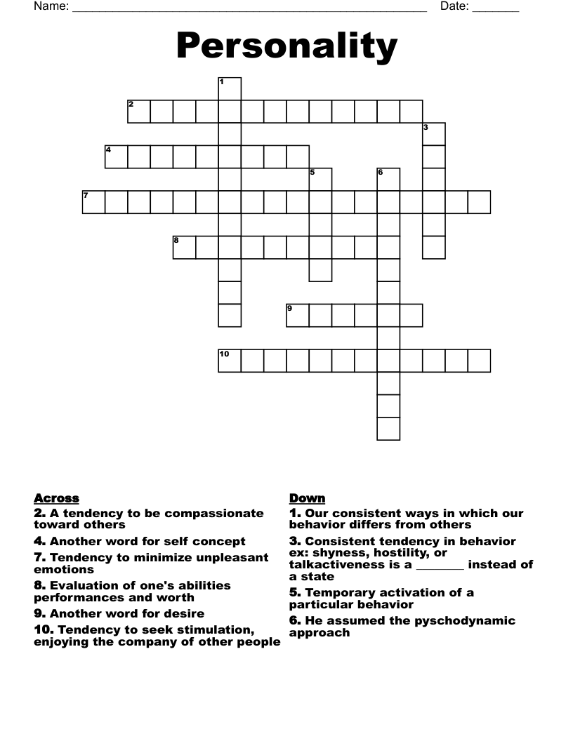 Crossword Personality Traits Esl Worksheetbabette4 Printable Character Traits Crossword