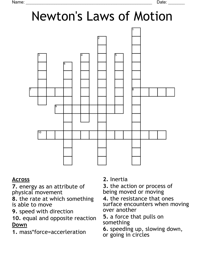 Newton's Laws of Motion Crossword WordMint