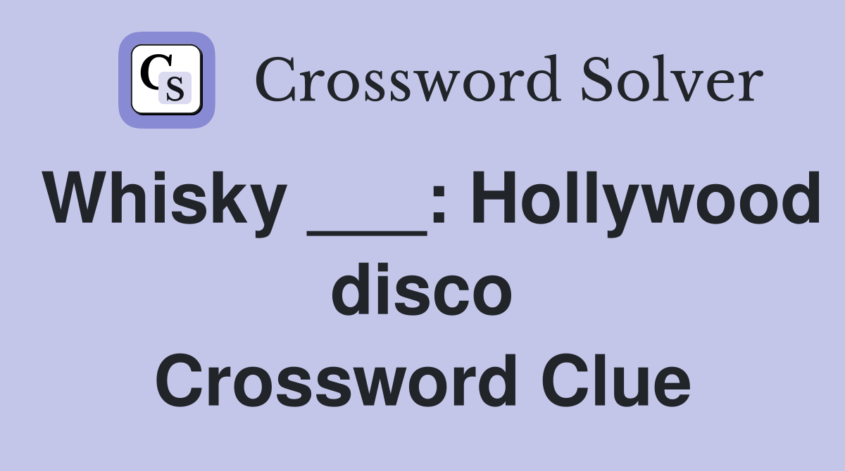 Here is the answer for the crossword clue whisky __: Hollywood disco last seen in. The top solutions are determined by popularity,. Hollywood disco clue featured in la times daily puzzle on february 16,. Web while searching our database we found 1 possible solution for the: