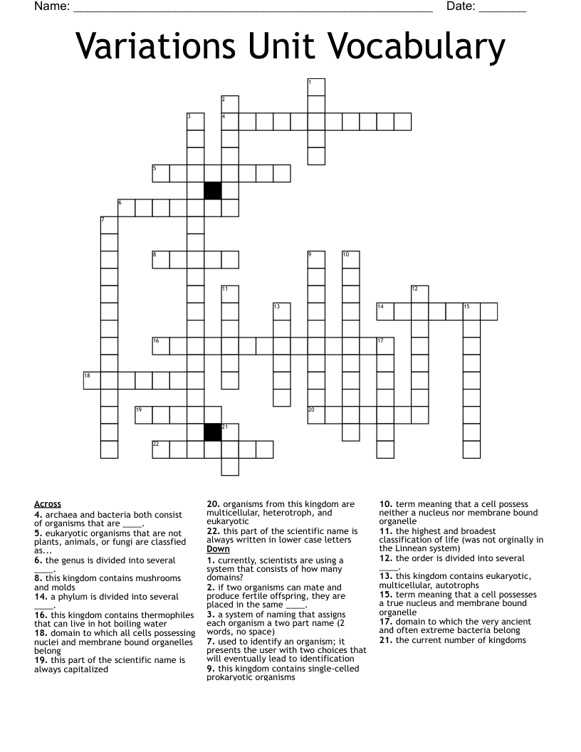 Variations Unit Vocabulary Crossword WordMint