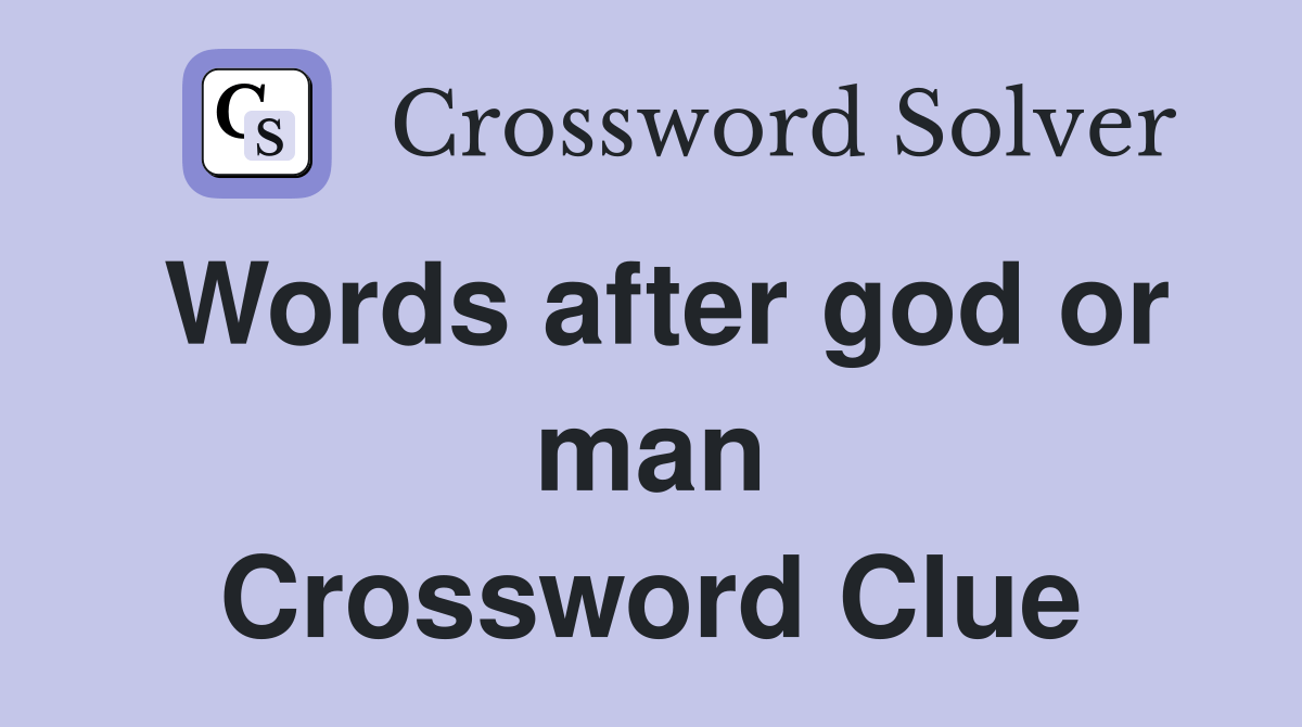 Web here is the answer for the crossword clue words after god or man last seen in new york times puzzle. Web all answers below for words after god or man crossword clue nyt will help you solve the puzzle quickly. Web here are the possible solutions for words after god or man clue. Web we solved the clue 'words.